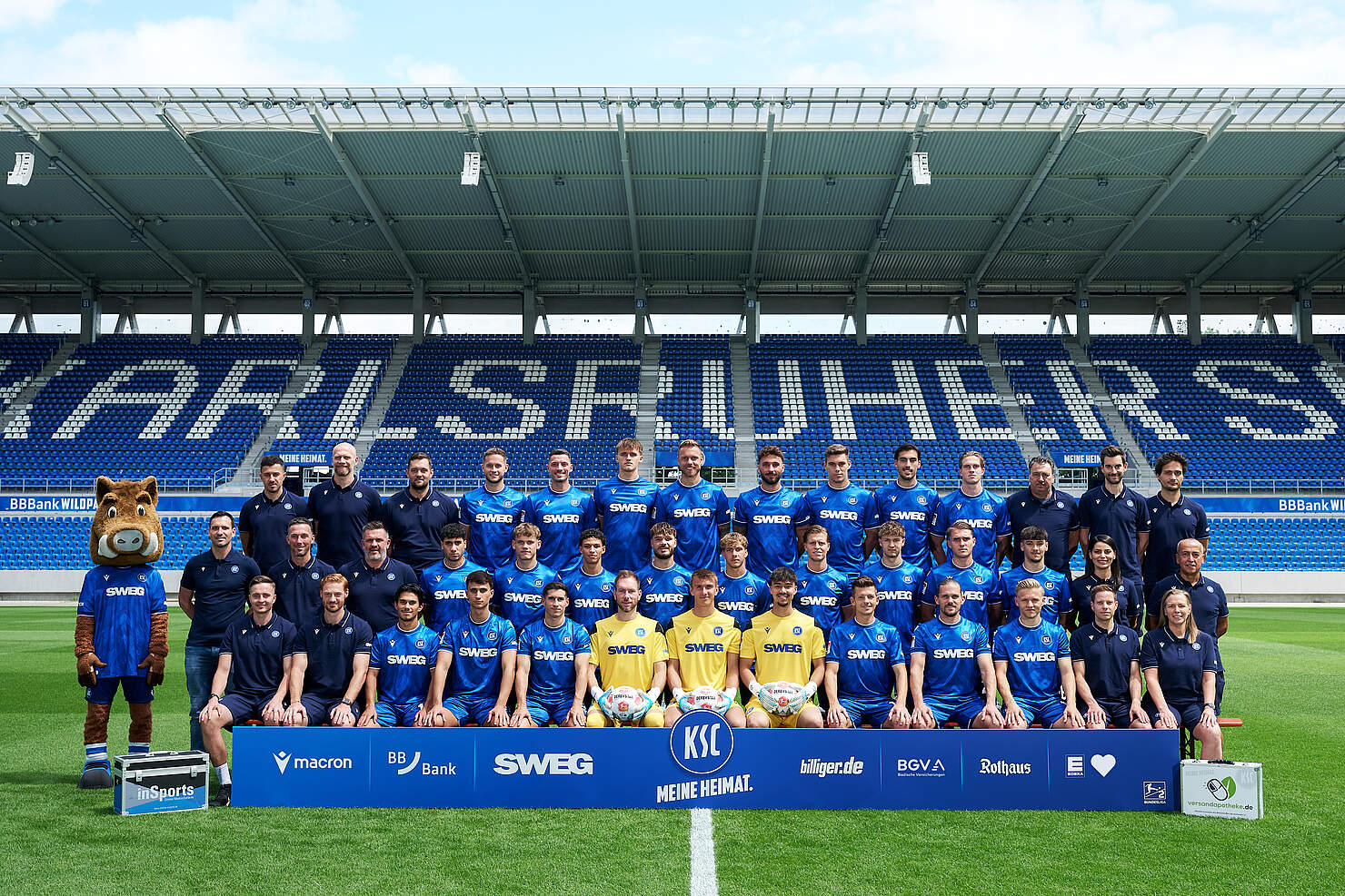 Maskottchen Willi Wildpark, KSC- Geschäftsführer Sport Mario Eggimann, Cheftrainer Christian Eichner, Co-Trainer Zlatan Bajramovic, Efe-Kaan Sihlaroglu, Niclas Dühring, Louey Ben Farhat, Lilian Egloff, Meiko Wäschenbach, Dzenis Burnic, Mateo Kritzer, Ali-Eren Ersungur, Rafael Pinto Pedrosa, Teammanagerin Sarah Saliba, Zeugwart Cafer Aydogan