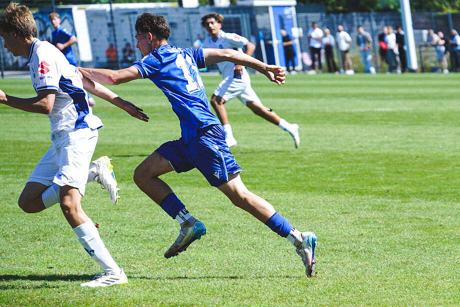Die U15 von Cheftrainer Kevin Kühn empfängt die TSG Balingen im Sparda Sport Park auf dem Gelände des KIT. Nur zwei Punkte trennen sie Nachwuchskicker von ihrem Gast, aktuell liegt der Blau-Weiße Nachwuchs mit sechs Punkten auf Platz vier, die TSG mit vier Punkten auf Platz sechs. Mit nur einem Punkt Abstand auf die Tabellenspitze eröffnet sich für Kühn und seine Mannschaft die Chance auf den Platz an der Sonne, denn: am vierten Spieltag der C-Junioren EnBW-Oberliga trifft auch der erstplatzierte SV Sandhausen auf den drittplatzierten Waldhof Mannheim.