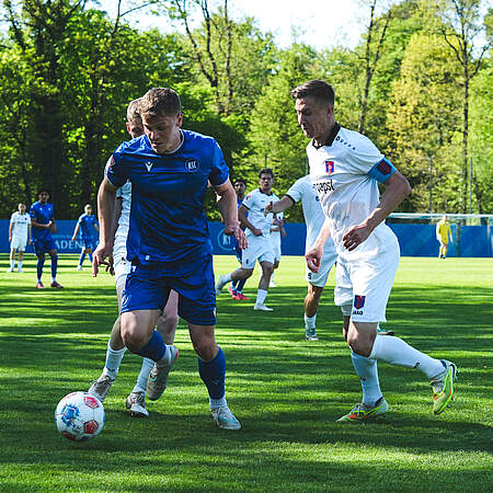 Die U23 der KSC grenke aKAdemie hielt auch beim FV Ravensburg ihrer Ungeschlagen-Serie im Jahr 2026 am Leben und konnte ihren achten Tabellenplatz behaupten. Zum Auftakt in den 23. Spieltag geht es für die Blicker-Elf gegen den Tabellenvierten FC Nöttingen. Die Mannschaft von Cheftrainer Dennis Will stand zu Beginn der Saison noch in einer anderen Tabellenregion, konnte die Abstiegszone aber noch Mitte der Hinrunde verlassen und sich seither in den Top sechs festsetzen. In der Hinserie verpasste der FCN dabei auch der Blicker-Elf eine deutliche 0:4-Niederlage. Das weiß auch Cheftrainer Dietmar Blicker, der Anfang der Woche betonte: „Wir haben am Freitag etwas gutzumachen, wir haben dort ganz klar und verdient verloren.“ Blicker erwartet „eine starke Mannschaft“ und fordert von sich und seinen Jungs: „Wir müssen uns echt steigern im Vergleich zur letzten Woche, damit wir am Freitag punkten.“