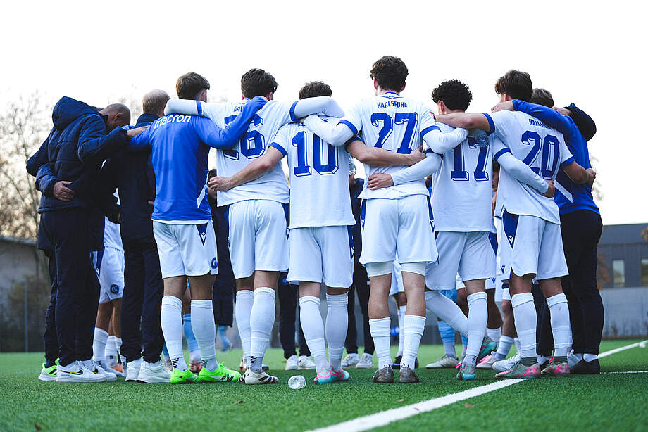 Cheftrainer Dietmar Blicker rotierte im Vergleich zur Heimniederlage gegen den FC 08 Villingen auf drei Positionen. Luis Dettling startete anstelle von Ali-Eren Ersungur, U19-Akteur Niklas Behr ersetzte Niclas Dühring und Jakob Distelzweig kam in die Dreierkette für Jassin Manai, der mit der tunesischen U23 auf Länderspielreise war. Zu Beginn der Partie gestaltete sich ein ausgeglichenes Kräftemessen ohne größere Chancen auf beiden Seiten. KSC-Torwart Simon Heering bügelte einen eigenen Fehler im Spielaufbau wieder aus, als er Pascal Sohm zum Distanzschuss einlud. Den ersten KSC-Abschluss vermeldete Niklas Behr, der etwas zu hoch zielte (13.). Mateo Kritzer köpfte wenig später eine Geigle-Ecke drüber, der nächste KSC-Standard sollte dann brandgefährlich werden. Die Variante fand jedoch keinen Abnehmer in Marlon Dinger, weil der KSC-Abwehrchef von Dietrich zu Fall gebracht wurde. Ein möglicher Elfmeterpfiff des Unparteiischen Lauritz-Philipe Hafner blieb aber aus, den Abpraller parierte Rombach im TSN-Gehäuse gegen Engel prächtig (30.). Der KSC hatte in dieser Phase mehr vom Spiel, aber auch Mahle fand an Rombach kein Vorbeikommen. Den Abpraller wollte Luis Dettling per Fallrückzieher auf das Tor bringen, traf dabei aber Gegenspieler Hellmann am Kopf. Für beide Akteure ging es nach dieser Aktion nicht weiter, Luis Dettling sah den roten Karton. Nick Hellmann wurde anschließend mit dem Verdacht auf Nasenbeinbruch ins Krankenhaus abtransportiert, wir wünschen an dieser Stelle nochmal gute Besserung und eine baldige Rückkehr! In Unterzahl probierten sich die Badener auch nach Seitenwechsel in der Offensive, Nico Engel scheiterte per Volley aus der Drehung (52.). Auf der Gegenseite nutzte Angreifer Pascal Sohm einen Marmein-Freistoß zur Führung der Hausherren (55.). Die Blicker-Elf wehrte sich und konnte immer wieder Nadelstiche setzen. Einen Geigle-Freistoß köpfte Philipp Sonn mit fragwürdigem Einsatz von Gegenspieler Oktay Erdem gerade so noch zu Mateo Kritzer, der in Rücklage den Ball nicht im Tor unterbringen konnte. Der Gastgeber kam selbst nur vereinzelt zu Abschlüssen, Simon Heering wurde aber nicht mehr ernsthaft gefordert. Eine Großchance auf den Ausgleich bot sich nochmals Marius Mahle, der nach Heering-Abschlag und Behr-Verlängerung aber erneut in Rombach seinen Meister fand. So blieb es zum Hinrundenabschluss bei einer bitteren 0:1-Niederlage in Neckarsulm. Lobenswert bleibt der Auftritt in Unterzahl mit einigen Chancen zum Ausgleichstreffer, fand auch KSC-Cheftrainer Dietmar Blicker: „Wir haben ein sehr gutes Auswärtsspiel gemacht. Heute lief vieles gegen uns.“ Für seine Mannschaft gilt es jetzt, sich zu schütteln, um sich für das Derby nächste Woche zu wappnen. Am Samstag geht es für die U23 zum Rückrundenauftakt nach Pforzheim. Anstoß der Partie beim 1. CfR ist um 14:00 Uhr.