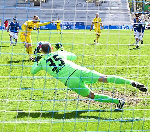 In einer weiteren Statistik ist unser Schlussmann ganz weit oben angesiedelt: im Parieren von Strafstößen. Siebenmal zeigten die Unparteiischen gegen uns auf den Elfmeterpunkt. Dreimal blieb Marius Gersbeck Sieger im Duell. Das sind starke 42 Prozent – Ligabestwert! Insgesamt konnte "Gersi" 103 Torschüsse in dieser Spielzeit abwehren – ebenfalls ein Spitzenwert.