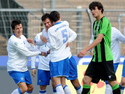 Bereits nach 16 gespielten Minuten durften die 262 Zuschauer im Wildparkstadion das erste Mal jubeln, als Christopher Bieber den Ball per Kopf aus fünf Metern im Tor der Gäste unterbrachte. In der 75. Minute machte Timo Kern nach einer Flanke von Patrick Dulleck mit seinem Treffer zum 2:0 dann alles klar für den KSC.