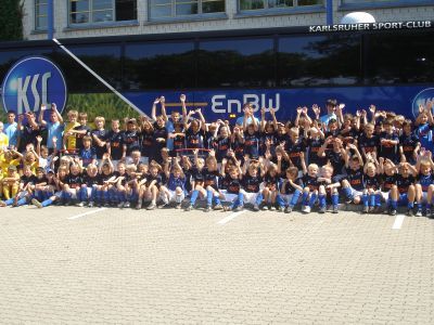 Neben Fußball pur erwartet die Teilnehmer auch ein Trainingsbesuch der KSC-Profis und eine Autogrammstunde mit allen KSC-Spielern sowie weiteren Überraschungen.