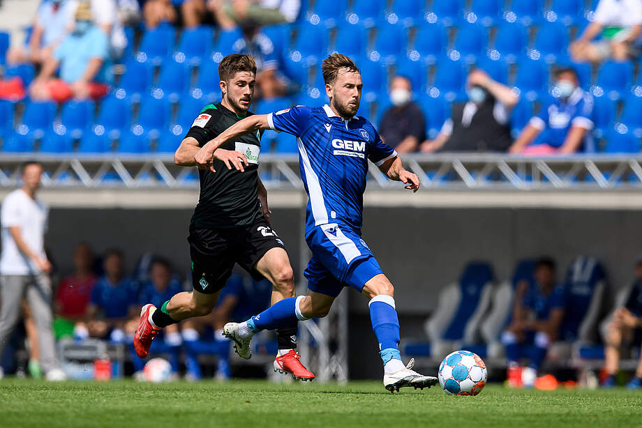 Durch den verletzungsbedingten Ausfall von Robin Bormuth musste Christian Eichner seine Elf umstellen – und tat dies auf zwei Positionen. Die Innenverteidigerrolle neben Christoph Kobald besetzte Routinier Daniel Gordon, auf der rechten Außenbahn durfte Lucas Cueto für Fabio Kaufmann ran. Im 4-2-3-1 ging es so gegen den Bundesligaabsteiger aus Bremen.