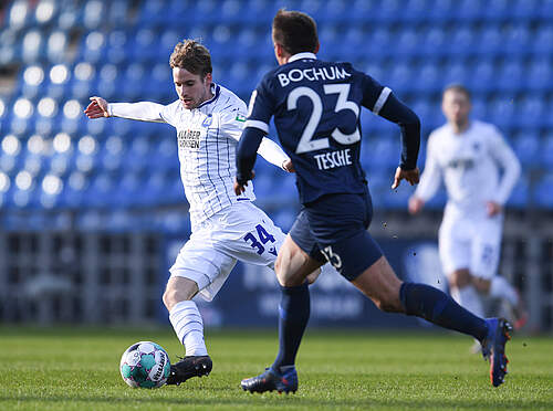 "Es stellt ja gleichzeitig auch den Gegner vor eine Aufgabe. Es ist die Frage: Gehen sie ein bisschen mehr Risiko, wollen sie Leute selbst für den Gegenzug abstellen oder wollen sie lieber auf Defensive gehen unde versuchen jeden Mann zu nehmen? Von dem her, haben wir uns was dabei gedacht und haben uns natürlich auch die Standards von Bochum angeschaut, wie sie da halt aufgestellt sind und entsprechend haben wir uns da für zwei, drei Systeme heute entschieden und das hat anderthalb-mal gut geklappt.