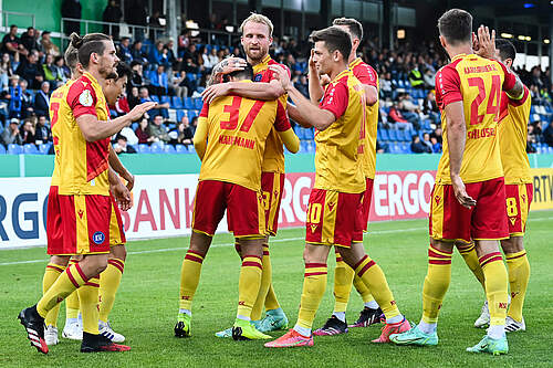 Nach einer ausgeglichenen ersten Hälfte mit sehr vielen Zweikämpfen im Mittelfeld wurde der aktuelle Tabellenführer der 2. Bundesliga im zweiten Durchgang seiner Favoritenrolle absolut gerecht und zieht verdient in die nächste Runde ein.
