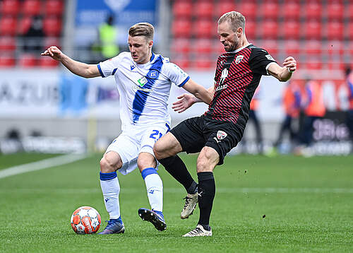 Eine bekannte Personalie bei den Gästen ist der Cheftrainer. Rüdiger Rehm wurde in Heilbronn geboren und kommt somit aus dem Karlsruher Umkreis. Während seiner aktiven Fußballkarriere trug Rehm das Trikot einiger bekannter Vereine. Unter anderem lief der damalige Linksverteidiger für den FC Saarbrücken, Erzgebirge Aue und Sonnenhof-Großaspach auf. Insgesamt kommt Rehm auf 188 Zweitligaspiele als Spieler. In dieser Saison kamen einige weitere als Trainer hinzu. Der FC Ingolstadt ist bereits die zweite Trainerstation des 43-Jährigen im deutschen Fußballunterhaus. Begonnen hatte er seine Trainerkarriere an der Seitenlinie des Clubs, wo er auch seine Spielerkarriere beendete: der SG Sonnenhof Großaspach. Diesen führte er von der Regionalliga in die 3. Liga. Daraufhin trainierte er für elf Spiele Arminia Bielefeld – seine ersten Spiele in der 2. Bundesliga. Nach mehr als vier Jahren bei an der Seitenlinie von Wehen Wiesbaden fand Rehm seinen Weg zu den Schanzern. Bei unserem kommenden Gegner wurde der Fußballlehrer am 08.12.2021 eingestellt mit der Mission, den damals Tabellenletzten vor dem Abstieg zu retten. Mit zwölf Punkten aus den 14 Spielen unter Rehm konnten die Ingolstädter die rote Laterne allerdings noch nicht abgegeben.