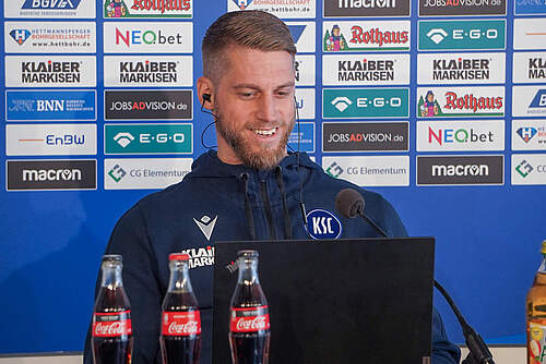 ...das Duell mit Paderborn: "Die Mannschaft wird bereit sein am Samstag, hat Lust und Laune und wird versuchen, die drei Punkte in Karlsruhe zu behalten. Das ist ja sowieso die Zielsetzung vor jedem Spiel.Grundsätzlich müssen wir bei uns bleiben. Es ist eine hochspannende Mannschaft, die Geschwindigkeit mitbringt in allen Situationen. Danach werden die Spieler auch größtenteils verpflichtet, es steckt eine klare Philosophie dahinter. Der Trainer geht das voll mit, auch an der Linie. Er ist auch ein positiv Verrückter. Wenn ein Gegner schneller Spieler hat, heißt das, dass ich als Team meinen Rücken schützen muss."