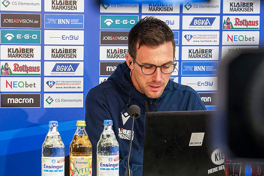 Christian Eichner und Marius Gersbeck blicken auf das Flutlichtduell mit dem 1. FC Nürnberg. Die Partie beim Tabellenneunten steigt morgen um 18.30 Uhr im Max-Morlock-Stadion (Live-Ticker auf ksc.de).