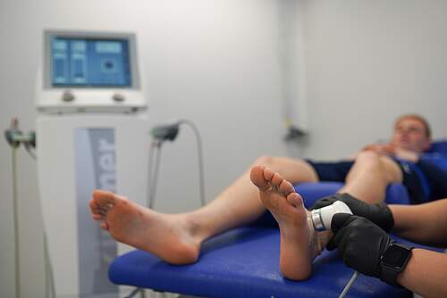 Die fünfminütige Behandlung an Tims Knöchel ist schon beendet. Der jüngste unseres Profikaders fühlt sich besser als davor und steht mit einem Lächeln von der Liege wieder auf. Und die Therapie zeigt Wirkung! Nur fünf Tage später konnte der junge Mittelfeldmann wieder komplett ins Mannschaftstraining einsteigen.