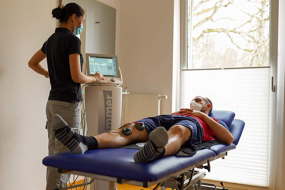 Egal ob die präventive Behandlung von Marius Gersbecks Knie, der Muskelfaserriss von Philip Heise oder die Sprunggelenksverletzung von Tim Breithaupt - unsere Physiotherapeuten Julia Bohn und Johannes Haberlandt schwören bei ihren Behandlungen auf die Geräte von Zimmer MedizinSysteme.
