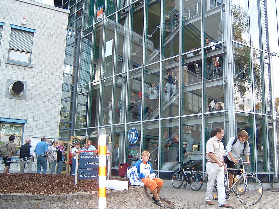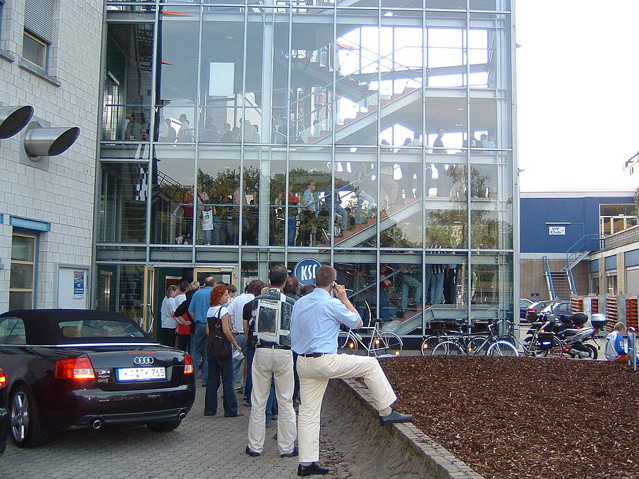 Obwohl der „offizielle“ Beginn erst für 09.00 Uhr geplant war, hatten die KSC-Ticketingleiterin Uschi Oetzel und ihre Kolleginnen auch für die Frühaufsteher unter den KSC-Fans den Schalter geöffnet. Bis weit aus dem Treppenhaus heraus bildeten sich Schlangen. Überraschung am Rande für die Wartenden: Der KSC verschenkte als kleine „Entschädigung“ fürs lange Anstehen T-Shirts des KSC-Hauptsponsors EnBW.