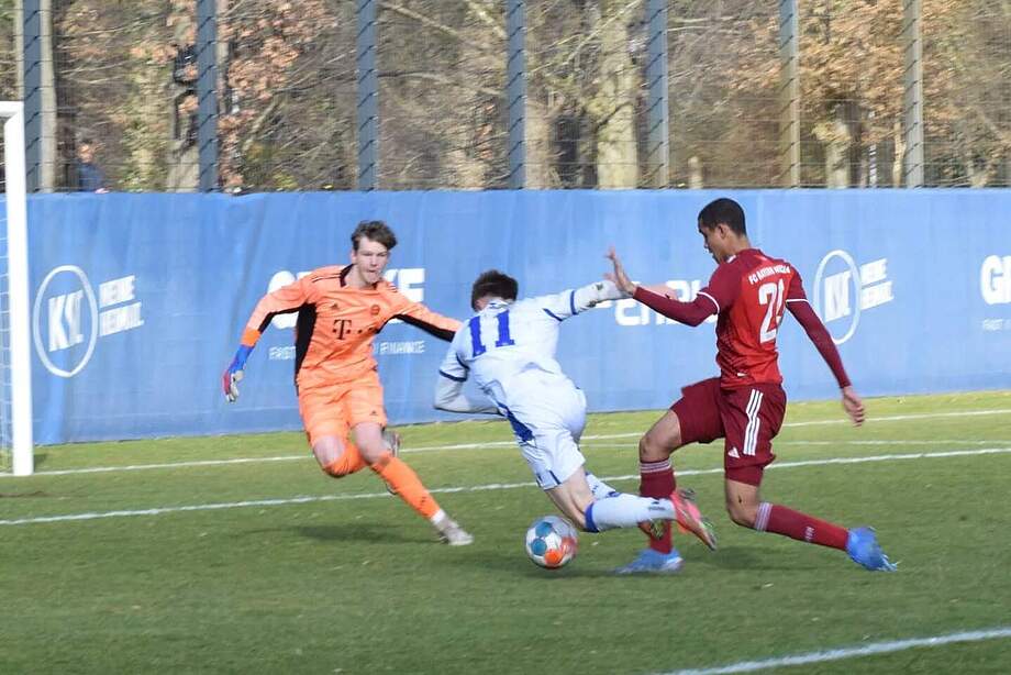 Wir fanden sehr gut ins Spiel und hatten schon nach wenigen Minuten einen Pfostentreffer. Im Anschluss verzeichneten wir in einer umkämpften Partie weitere gute Möglichkeiten und hätten in Führung gehen müssen. Im Laufe der ersten Hälfte fanden auch die Bayern, die mit einigen Regionalliga-Spielern angereist sind, besser in das Spiel. Es ging mit 0:0 in die Pause.