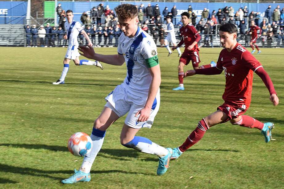 Die U19 der KSC GRENKE aKAdemie gewinnt das erste Heimspiel und zugleich das Auftaktspiel gegen die starke Mannschaft aus Bayern. Nach einem spannenden und hitzigen Spiel bleiben wichtige drei Punkte zuhause im Wildpark.