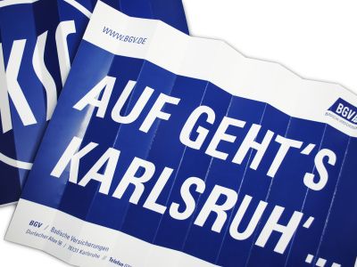 Nach außen sichtbar wird die Partnerschaft beim Auftakt ins neue Fußballjahr mit dem Heimspiel gegen den FC Erzgebirge Aue am Sonntag, den 05.02.2012. Hier bietet der BGV gleich die richtige Unterstützung und verteilt 15.000 Fanklatschen, mit denen die Zuschauer ihren KSC anfeuern können.