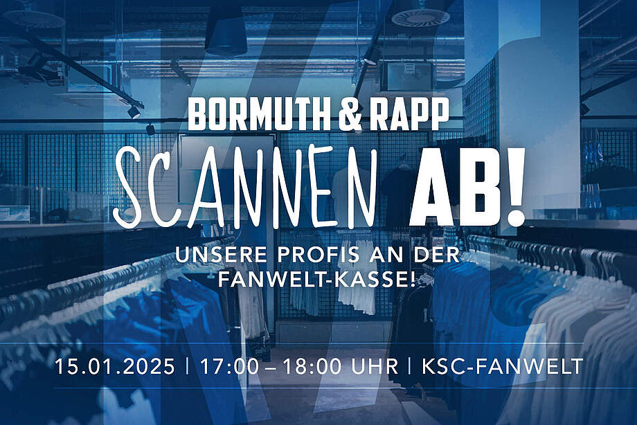 Nach dem Training am kommenden Mittwoch steht für zwei unserer Jungs dieses Mal noch kein Feierabend an. Denn an der Kasse der FanWelt geben Robin Bormuth von 17:00 bis 18:00 Uhr Gas und scannen eure Artikel. Außerdem übernimmt der KSC in dieser Stunde nach dem Zufallsprinzip zwei Einkäufe! Also schaut in der FanWelt vorbei, lasst euch eure Artikel von Robin Bormuth und Nicolai Rapp in eure Tüte packen und spart euch mit etwas Glück sogar den gesamten Einkaufspreis!