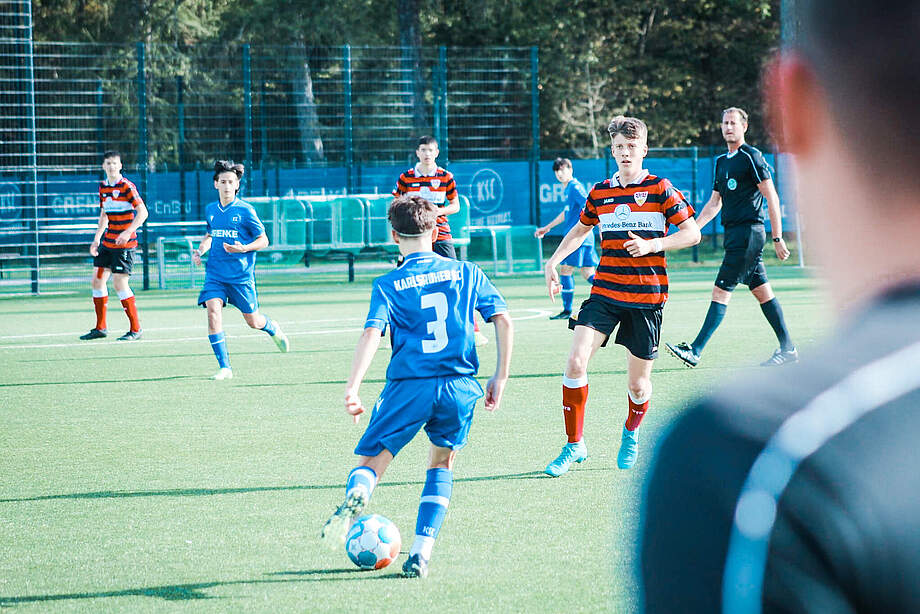 Mit einer 1:0 Führung nach einem schön vorgetragenen Konter ging es für den KSC in die Pause gegen die Rivalen aus Schwaben. Eine anschließende Drangphase des VfB konnten die Badener abwehren. Nach der Halbzeitpause nutzte der VfB einen Fehler im Spielaufbau der Karlsruher zum 1:1 Ausgleich aus. Doch fünf Minuten vor Schluss übertraf Blau-Weiß die Freude durch den erneuten Führungstreffer. Somit gewann die U15 des KSC mit 2:1 gegen den VfB Stuttgart und darf sich zurecht nach einer starken und engagierten Leistung verdienter Derbysieger nennen.