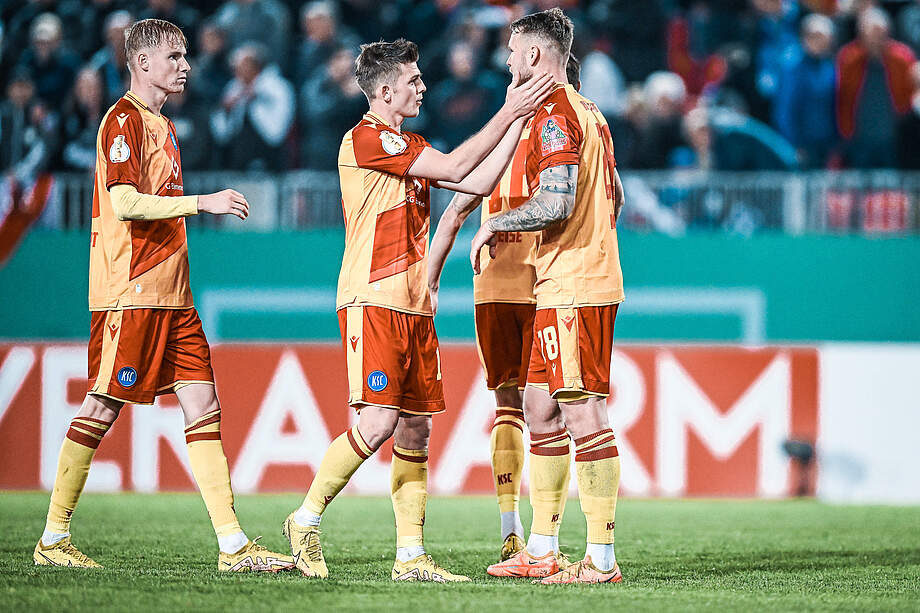 Aufstellung KSC: Gersbeck - Thiede, M. Franke, Ambrosius (77. Ballas), Heise - Breithaupt, Gondorf, Wanitzek, Nebel (46. Arase, 111. Choi) – Batmaz (46. Rapp), Schleusener (106. Kaufmann). Bank: Eisele (Tor), Jung, Kobald, Jensen. Trainer: Christian Eichner.