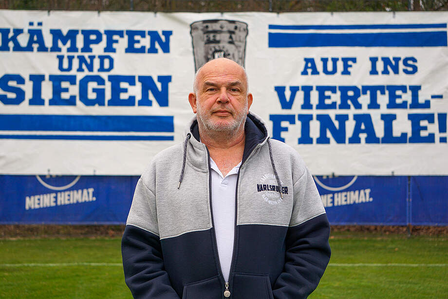 Wolfgang Sauer, den jeder, wirklich jeder, nur Wolle nennt, hat beruflich schon so einiges erlebt. Als gelernter Metzger und Maurer weiß er definitiv, wie man anpackt. So hat er sich nach seinen beiden Ausbildungen im Facility Management selbstständig gemacht und dieses Geschäft über einige Jahre erfolgreich geführt. Doch der Fußball hatte ihn früh in den Bann gezogen. Als langjähriger KSC-Fan wurde er im Laufe der Jahre zu einem Vorstandsmitglied der „Interessengemeinschaft Karlsruher Fußballfans“ – quasi die Vorgänger der heutigen „Supporters“. 1999 kam dann das erste Engagement als Fanbetreuer in unserem Club. „Damals habe ich schon einige Aufgaben eines Fanbeauftragen übernommen“, sagt Sauer selbst über seine ersten Jahre in der blau-weißen Geschäftsstelle. Im Juli 2011, also vor fast elf Jahren, wurde Wolle zum festangestellten und hauptamtlichen Fanbeauftragten beim KSC. Damals wurde er Nachfolger von Andreas Worms, der vorher die Stelle ehrenamtlich inne hatte.
