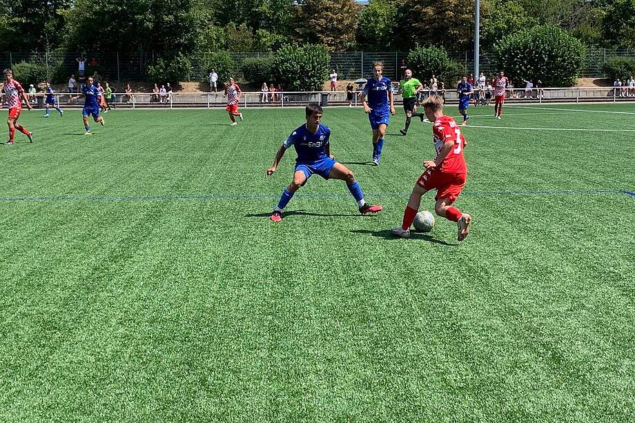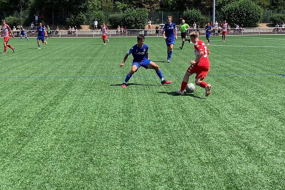 Die Wildparkkicker gingen durch einen Treffer von Efe Yesil früh in Führung. Doch die Mainzer antworteten direkt darauf und glichen schnell aus und erhöhten um zwei weitere Tore zum 3:1. Die Jungs aus dem Wildpark ließen sich nicht beirren und verkürzten durch Mohamed Ibrahim zum 3:2. Erneut war es Efe Yesil, der noch in der ersten Halbzeit den Ausgleichstreffer zum 3:3 erzielte.