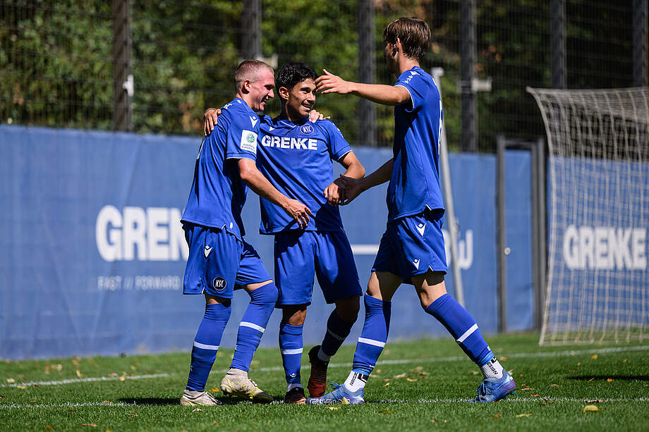 Nach dem Heimspielerfolg gegen den SC Freiburg, wollten die Blau-Weißen auch an diesem Spieltag die drei Punkte im Wildpark behalten. Direkt zu Beginn waren die Jungs aus dem Wildpark fokussiert und erspielten sich bereits in der 3. Minute die erste Torchance. Diese konnte jedoch vom Schlussmann der Gäste abgewehrt werden. Im weiteren Verlauf folgten Torchancen auf beiden Seiten, die entweder zu unpräzise am Tor vorbei gingen oder aber durch die Torhüter geklärt werden konnten. Mit den jeweils ungenutzten Chancen aber einer sehr präsenten Karlsruher Mannschaft ging es für beide Teams mit einem Zwischenstand von 0:0 in die Kabine.