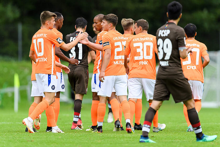 Im letzten Testspiel in Waidring traf der KSC am Abend auf den Zweitligisten FC St. Pauli. Dabei konnte die Mannschaft von Alois Schwartz die weiße Testspielweste bewahren und schlug die Hamburger deutlich mit 4:1.