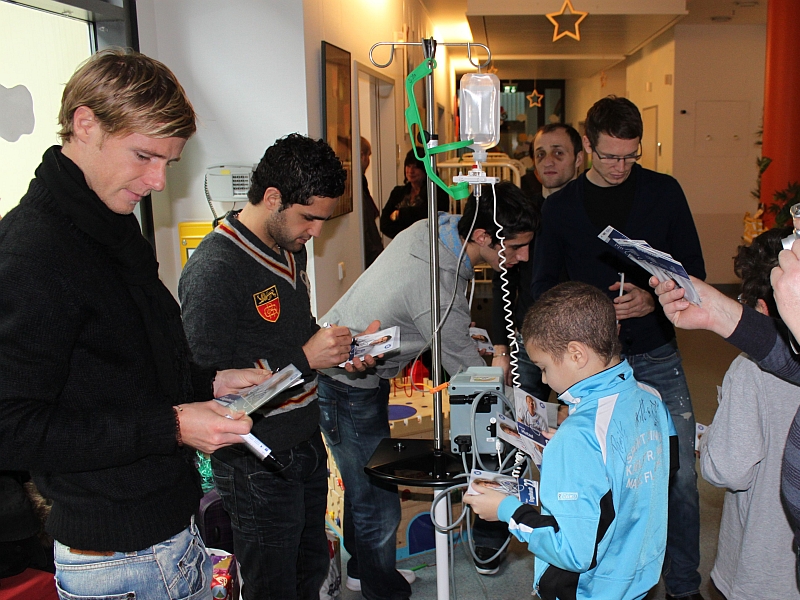 Leuchtende Kinderaugen gab es heute in der Kinderklinik des Städtischen Klinikums Karlsruhe. Wie schon in den letzten Jahren statteten mehrere KSC-Spieler der Station „Regenbogen“ einen Besuch ab und bescherten die kleinen Patienten.