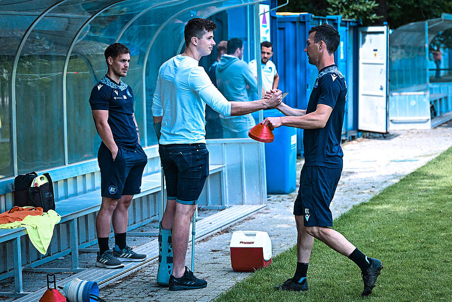 Direkt nach der Landung ging es für unseren Innenverteidiger zu Mannschaftsarzt Dr. Marcus Schweizer, der sich ein eigenes Bild der Verletzung machen wollte. Seine Diagnose: "Wadenbeinschaftfraktur." Eine genaue Ausfallzeit lässt sich - Stand jetzt - nicht bestimmen. "Sicher ist nur, dass Daniel uns längere Zeit nicht zur Verfügung steht und dass wir die Verletzung konservativ behandeln", so Dr. Schweizer.