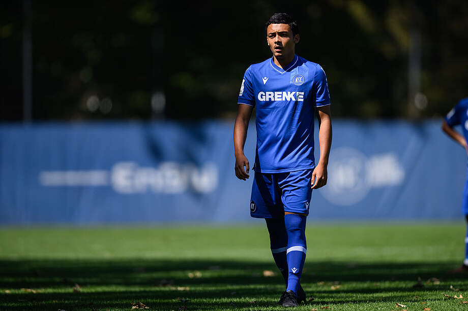 Wie zu erwarten, wurde es von Anfang an ein kompliziertes Spiel für die Badener. Vor 125 Zuschauerinnen und Zuschauern taten sich beide Seiten anfänglich schwer, gute Chancen herauszuspielen. Der KSC war etwas aktiver in der Vorwärtsbewegung und versuchte das erste Tor zu erzielen. Das führte hinten zu Räumen für die Gäste. Luke Knappe nutzte in der 22. Spielminute einen dieser Räume und traf links unten ins Tor zum 0:1. Im Anschluss konnten unsere Jungs keine Akzente vor dem gegnerischen Kasten setzten und gingen somit ohne eigenes Tor in die Halbzeit.