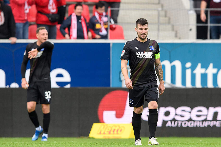 Jerôme Gondorf: "Ich glaube, dass wir das Spiel in der ersten Halbzeit verloren haben. Wir waren nicht griffig genug. Dabei wussten wir genau, was auf uns zukommt, dass sie eklig sein werden, dass sie gerne auf Zeit spielen, dass sie gern am Boden liegen. Aber eben auch, dass sie jeden Ball mit 110 Prozent angehen und da haben wir es gerade in der ersten Halbzeit nicht geschafft, dagegenzuhalten. Und ich glaube das klarste Zeichen dafür war dann auch das Gegentor kurz vor der Halbzeit. Dann gehst du natürlich statt mit einem 0:0 mit dem 0:1 in die Pause und musst dich hinterfragen wieso, warum, weshalb. Ich glaube, unsere Reaktion in der zweiten Halbzeit war dennoch okay, aber es reicht halt gerade einfach nicht.