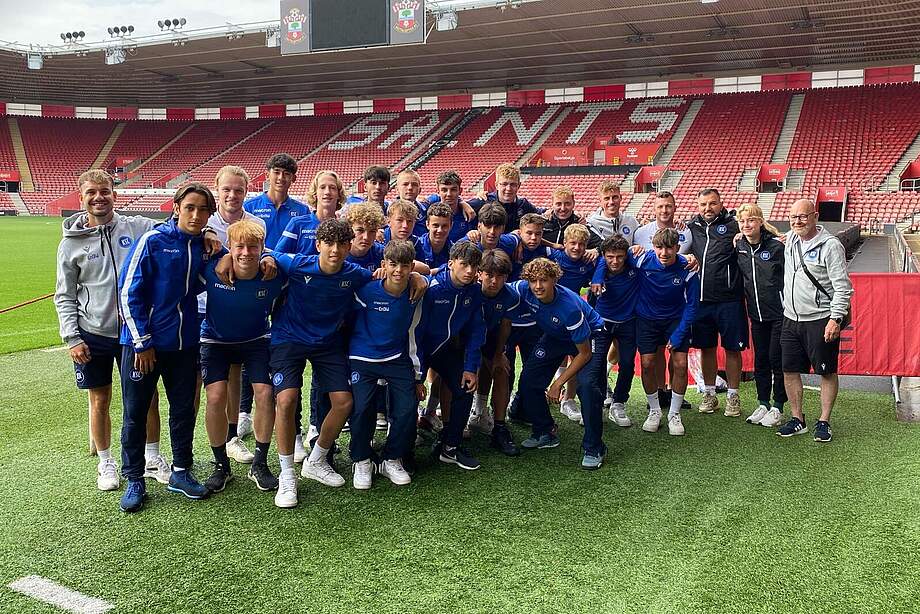 Nach einigen Wechseln in und nach der Halbzeit wurde unser Spiel zunehmend schwächer, jedoch wurden wir von Southampton nicht dominiert, sondern zeigten weiterhin unsere Stärken. Wir erzielten den Anschlusstreffer zum 4:3 und erspielten uns weitere gute Chancen. Der Schuss zum Ausgleich wurde auf der Linie geklärt. Nach mehreren ungenutzten Chancen unserer Jungs nutzten die Gastgeber ihre Chancen eiskalt. Ein geschenktes Tor und zwei Elfmeter später endete das Spiel nach 90 Minuten mit einer 8:3 Niederlage. Eine starke Leistung unserer Jungs, die durch die zu hohe Ergebnisdifferenz überschattet wird. Dennoch ein verdienter Sieg für die starke Mannschaft des FC Southampton. Dem aufschlussreichen Spiel folgte eine kurze Tour durch die Katakomben und Kabinen des Stadions.