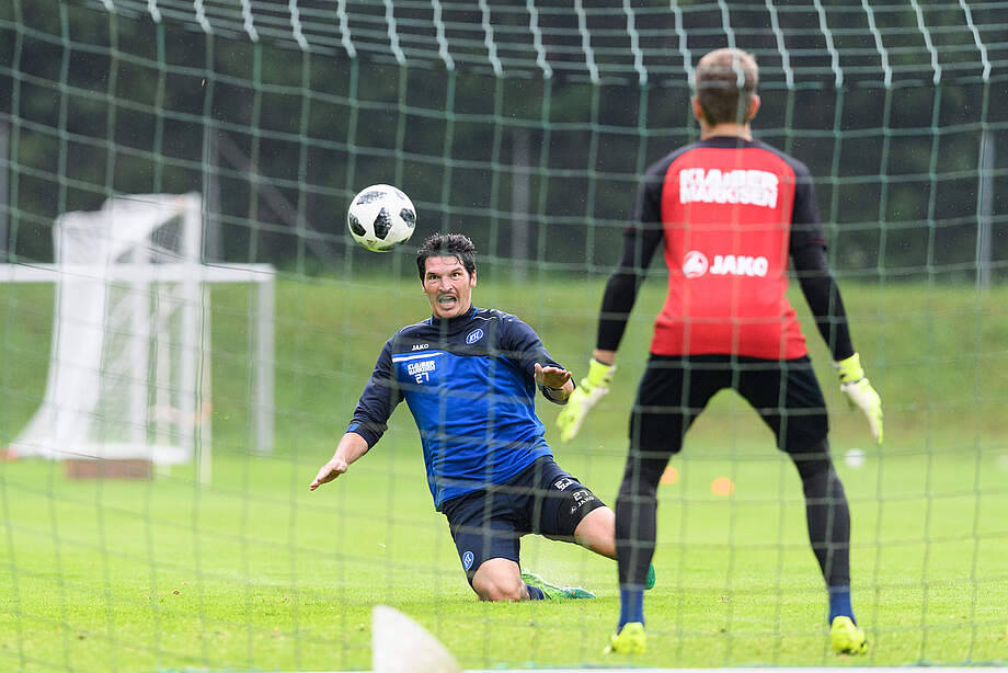 Am Mittwoch standen in Waidring zwei Trainingseinheiten auf dem Programm. Während des ersten Durchgangs am Vormittag kam dem Wetter eine besondere Rolle zu. Denn anders als am Vortag wurde die Mannschaft von anhaltendem Nieselregen begleitet. Das Trainerteam machte sich dies zunutze und richtete die Einheit auf den rutschigen Untergrund aus. An verschiedenen Stationen arbeiteten die Profis an ihren Fähigkeiten auf dem nassen Rasen: Grätschen, Kopfbälle und Flugkopfbälle, Volleyschüsse und Zweikämpfe wollte Trainer Alois Schwartz sehen.