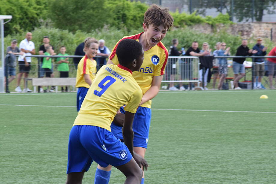 Am vorletzten Spieltag D-Junioren Kreisliga traf im Spitzenspiel die U12 der KSC GRENKE aKAdemie auf den Zweitplatzierten aus Friedrichstal. Die Zuschauer konnten eine spannende und faire Partie anschauen, die unter der Leitung von Schiedsrichter Alfons Lutz geführt wurde. Direkt zu Beginn übten die Gäste Druck auf das Tor der Wildpark-Kicker aus und kamen zu zwei Abschlüssen. Diese waren zum Glück nicht weiter gefährlich und bildeten einen Weckruf für die Jung des KSC. Danach fanden wir besser in das Spiel und konnten unsere Pässe sicherer spielen. So entstand dann auch durch eine starke Kombination im Spielaufbau in der 8. Minute der Führungstreffer für die Jungs der KSC GRENKE aKAdemie. Nur zehn Minuten später legte unser Stürmer nach und erzielte mit seinem Doppelpack das 2:0. Mit dem zwischenstand von 2:0 ging es für die beiden Mannschaften bei sommerlichen Temperaturen in die Halbzeitpause.