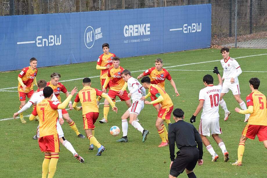Die U17 der KSC GRENKE aKAdemie spielt in ihrem letzten Heimspiel dieses Jahr gegen den 1.FC Nürnberg. Nach einer hitzigen Partie trennten sich beide Teams mit jeweils einem Punkt und einem Tor.