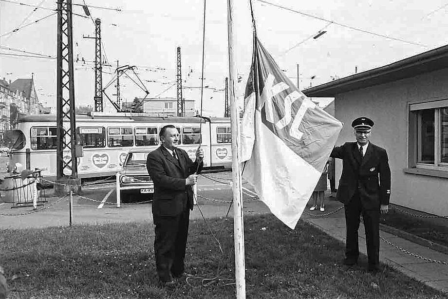 Eine - aus heutiger Sicht - Kuriosität gab es in den 1970er Jahren nach Spielen des KSC. Um die diensthabenden Straßenbahnfahrer über Sieg, Niederlage oder Unentschieden ihres Lieblingsclubs zu informieren, wurde am Straßenbahndepot an der Durlacher Allee die KSC-Fahne gehisst. So wussten die Lenker der Bahnen beim Vorbeifahren, wie der KSC gespielt hat. Stand die Fahne auf Vollmast (sprich ganz oben), hatte der KSC gewonnen, war die Fahne auf Halbmast endete die Partie remis. Im Falle einer Niederlage wurde auf das Hissen der Flagge verzichtet.